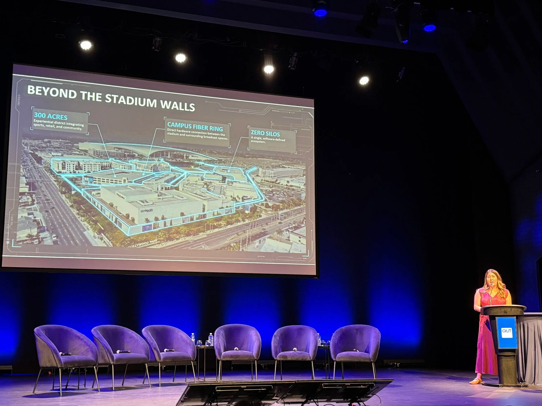 Suh’s perspective came from managing a 300-acre mixed-use precinct at Hollywood Park, with its crown jewel SoFi Stadium, to host the opening ceremony and swimming events for the 2028 LA Olympics. Her advice? Invest in permanent, owner-provided technology wherever possible and get the various stakeholder groups aligned during design, not after. As she put it, “if you can get it right the first time, it’s a million times cheaper than going back”. Those lessons are now shaping how SoFi prepares for FIFA World Cup, the Super Bowl and the Olympics over the next two years.
